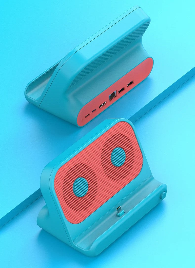 Raxiva - 6-in-1 USB-C Game Hub Docking Station and Cooling Fan – HDMI 2.0, Dual USB 2.0, RJ45, 100W PD, and Cooling Fan for Nintendo Switch/OLED