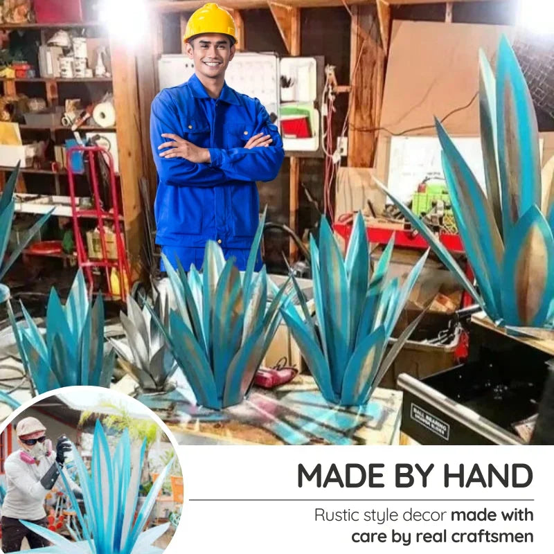Conçue avec soin, cette agave en métal allie élégance et look saisissant, mettant en valeur des couleurs vibrantes sur un fond d'acier patiné.