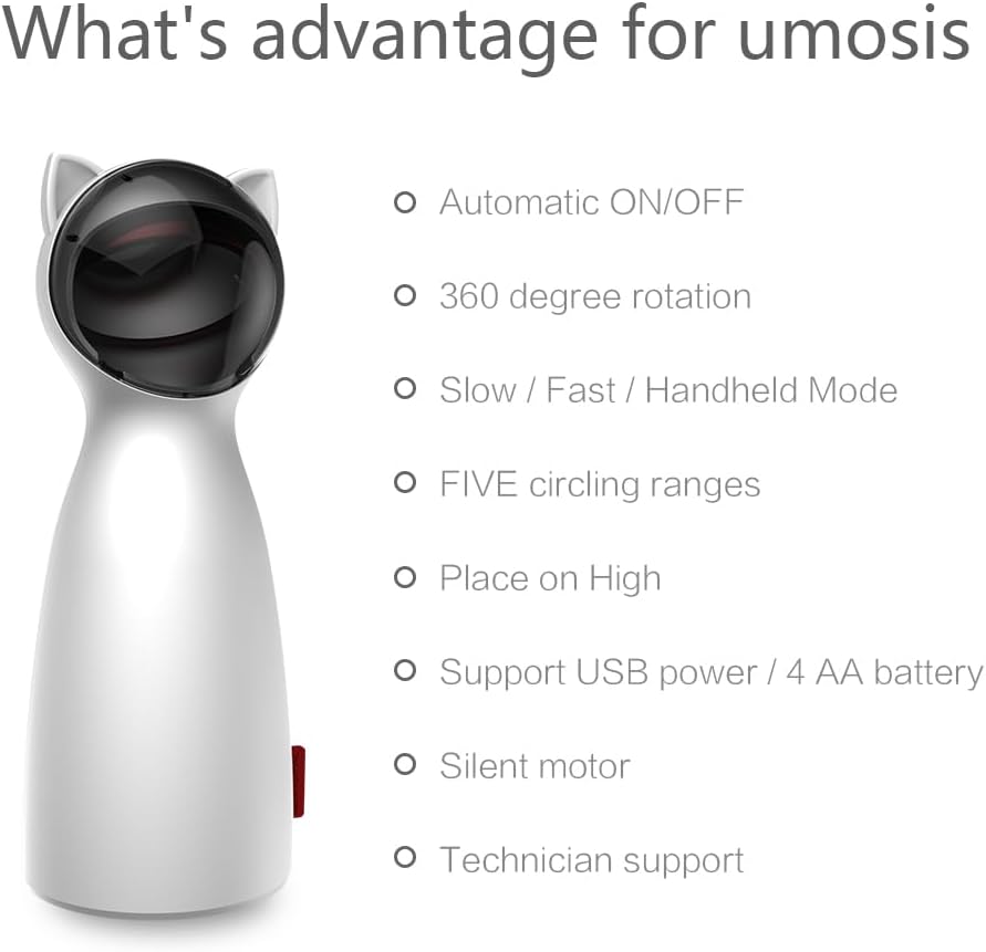 Ce jouet de pointe possède un point laser rouge captivant que votre chat adorera chasser, fonctionnant de manière autonome avec des cycles automatiques d'allumage et d'extinction pour maintenir l'excitation — vous permettant de vous détendre pendant que votre animal s'amuse sans fin.