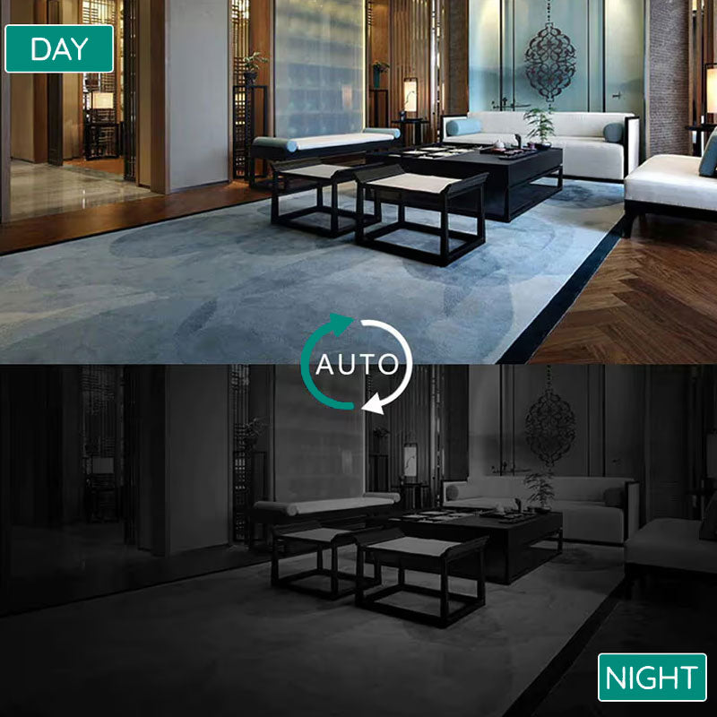Passez sans effort entre les modes jour et nuit, afin que vous puissiez toujours profiter d'une vue vibrante de votre environnement, peu importe à quel point il fait sombre.