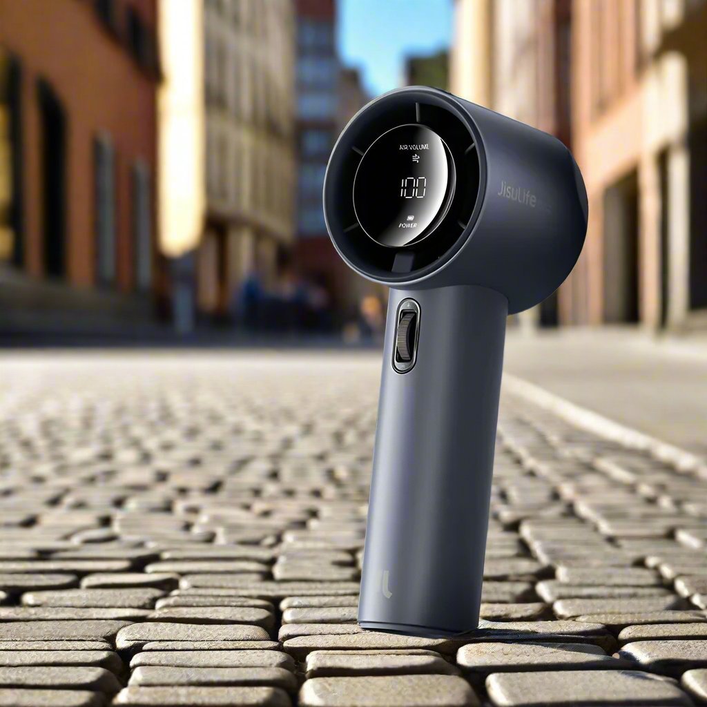 L'interrupteur à défilement intuitif vous permet de contrôler le flux d'air selon votre préférence, tandis que l'affichage numérique vous informe de la vitesse actuelle et de l'autonomie de la batterie. Fini les doutes sur le moment de recharger—ce ventilateur est conçu pour offrir jusqu'à 15 heures d'air rafraîchissant avec seulement 1,5 heure de charge rapide.