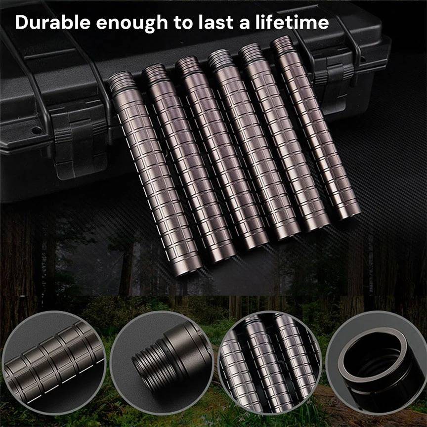 Avec son design modulaire innovant, ce bâton de marche dispose d'un filetage de précision qui connecte solidement chaque composant. Tournez et verrouillez facilement les sections pour personnaliser votre configuration d'outil à la volée. Les compartiments internes offrent un rangement sécurisé sans sacrifier l'équilibre et la stabilité, rendant son utilisation agréable.
